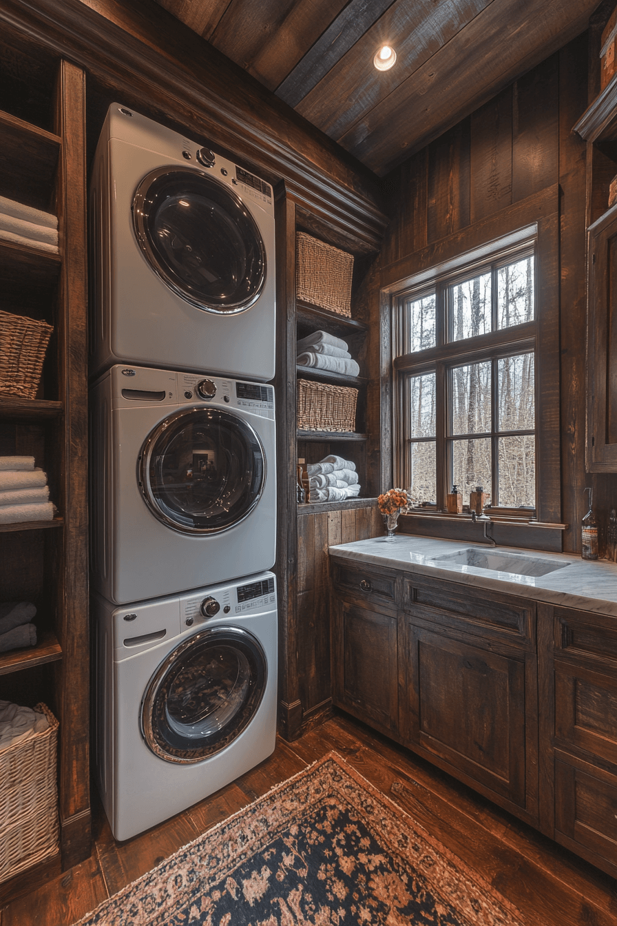 Laundry rooms gain charm with antique farmhouse decor ideas that include vintage washboards or cabinets. These pieces add warmth and personality to functional spaces. Worn surfaces make chores feel less routine. The room becomes more inviting and thoughtful. Even utility spaces deserve beauty.