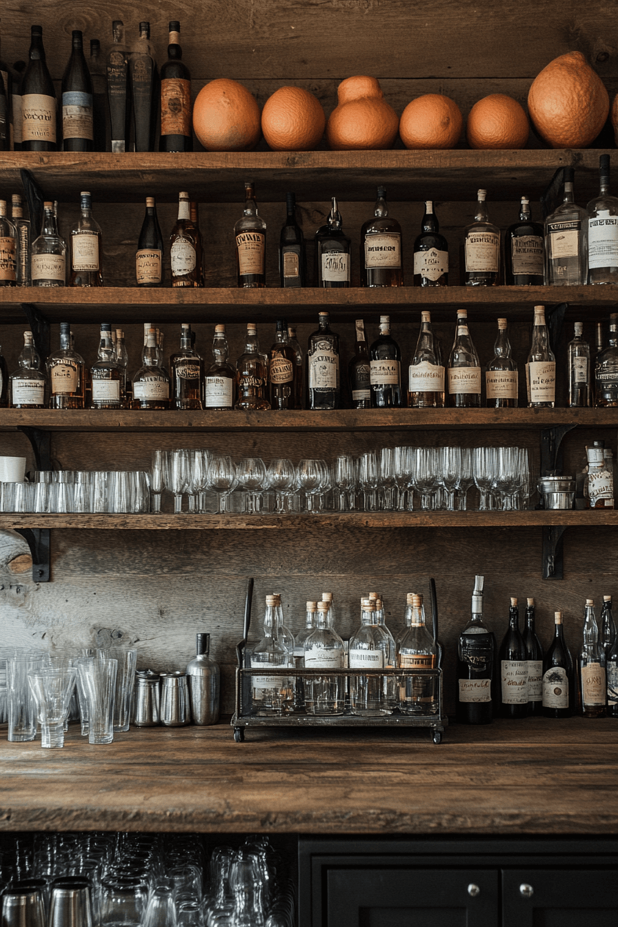 Vintage bar setups stand out among antique farmhouse decor ideas for relaxed entertaining. Aged carts, reclaimed stools, and storied glassware create cozy gathering spots. The atmosphere feels personal and welcoming. Hosting becomes effortless and intimate. Every drink feels special.