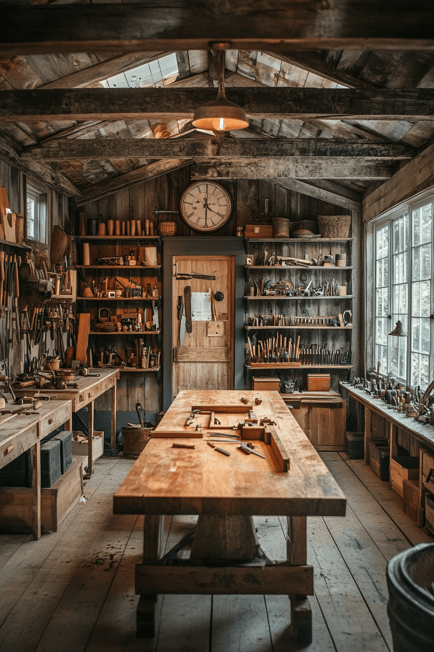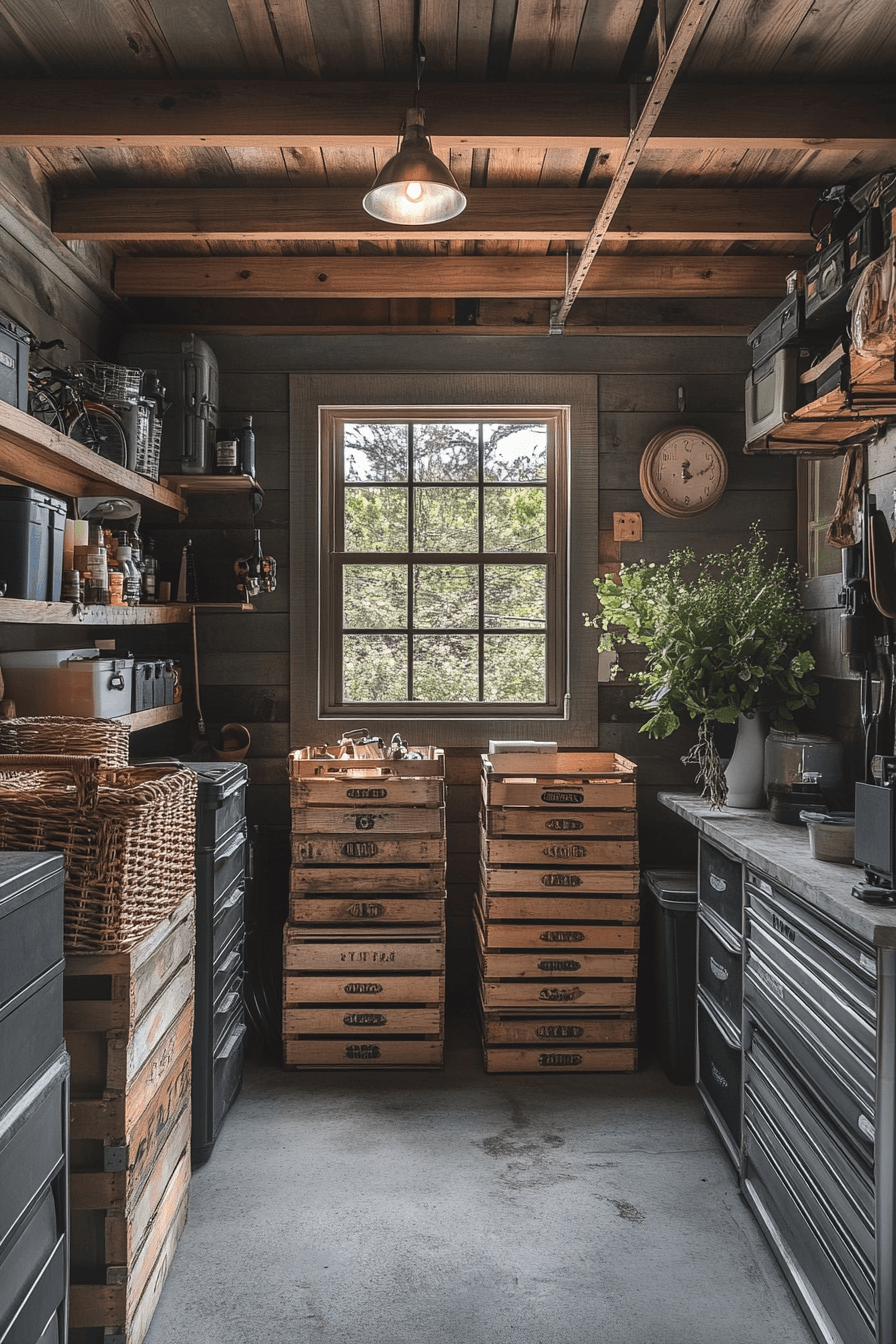 Garages gain unexpected style through antique farmhouse decor ideas using repurposed tools and storage. Vintage crates and metal bins add character and organization. Practical solutions feel visually inspiring. Raw textures create an authentic atmosphere. Storage becomes part of the design.