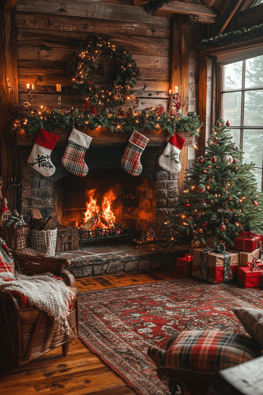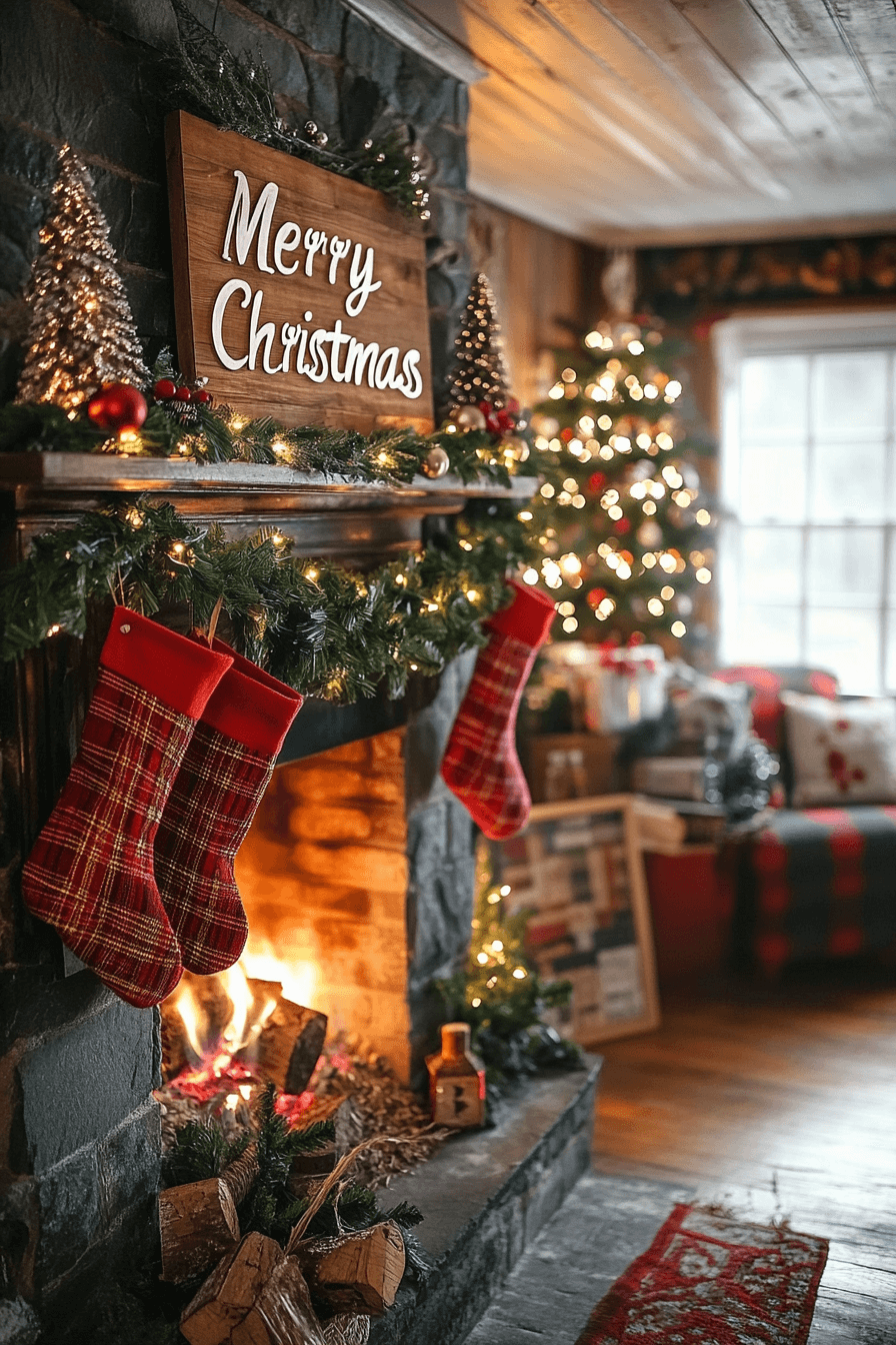 Your fireplace becomes the heart of the home with layers of garlands, stockings, and flickering candles. The textures of wood and greenery radiate authentic comfort. Every glow embodies the cozy beauty of farmhouse Christmas decor. It’s rustic warmth brought to life.