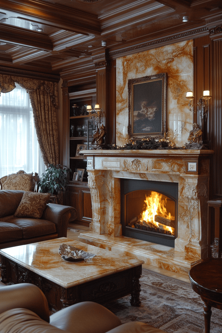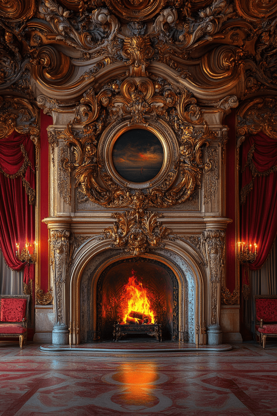 Baroque fireplaces are among the most extravagant and dramatic fireplace interior ideas, designed to captivate with intricate carvings and luxurious finishes. These fireplaces serve as works of art, transforming any space into a regal haven. Perfect for high-ceiling rooms or opulent homes, they blend warmth with grandeur.