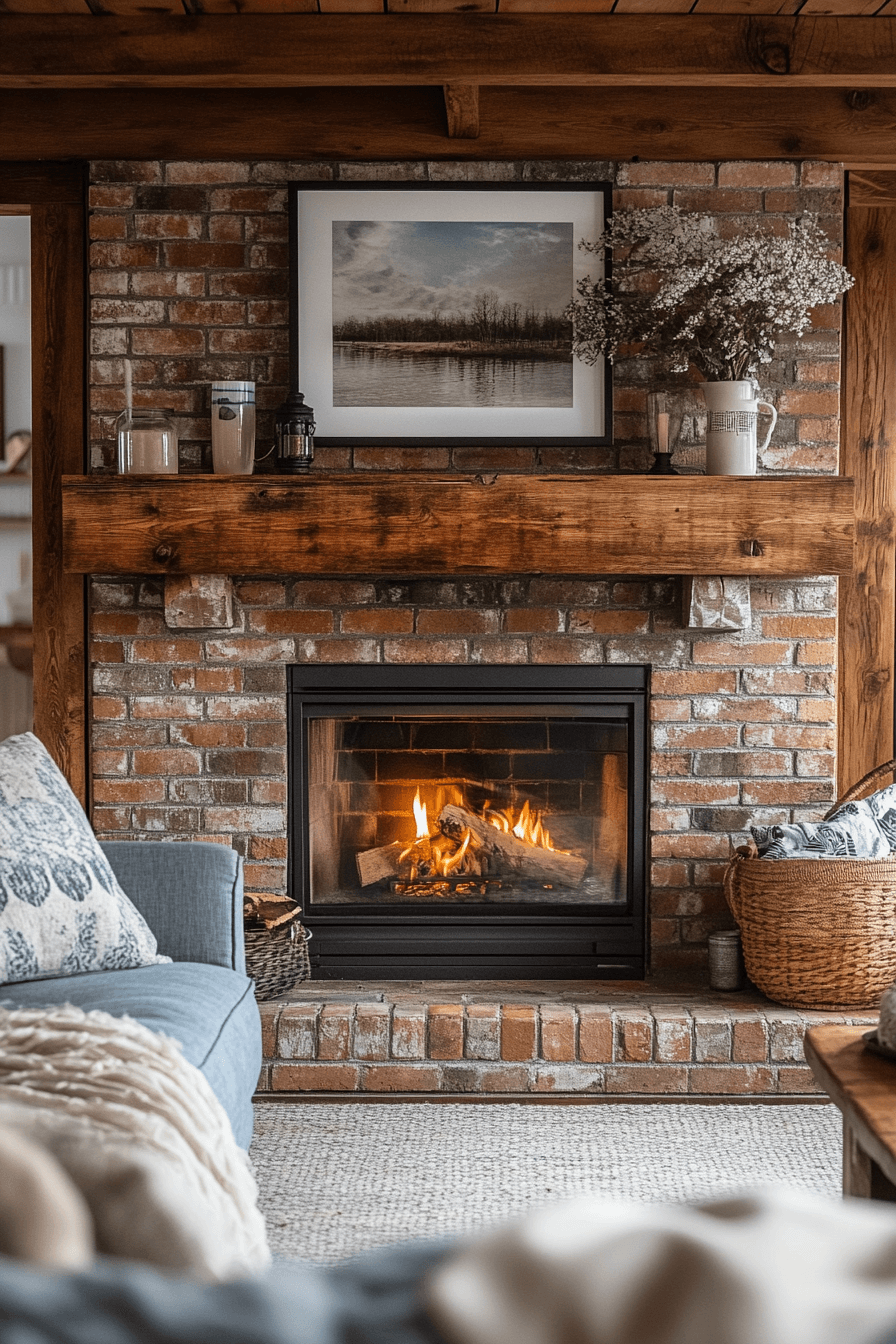 Traditional brick fireplaces bring an unmatched nostalgic warmth to any space. The textured, earthy colors provide a cozy and grounded atmosphere that feels timeless. Whether in a rustic cabin or a more contemporary home, a brick fireplace instantly adds comfort and authenticity to the room. Pair it with wood beams and vintage accessories for a truly inviting environment.