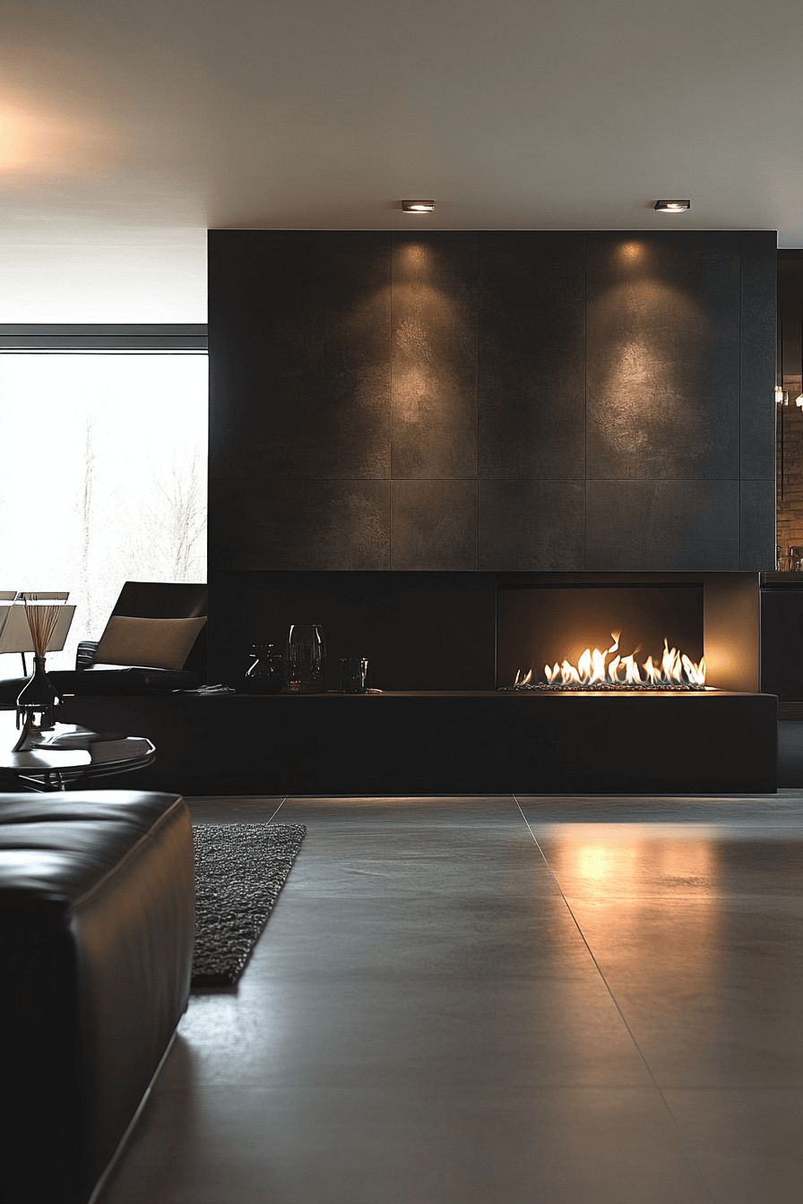 Black fireplaces offer bold, striking elegance, making them one of the most stylish fireplace interior ideas. Their dark finish creates a dramatic contrast, enhancing the flickering flames and adding sophistication to any space. Whether matte or glossy, black fireplaces anchor a room with confidence and elegance.