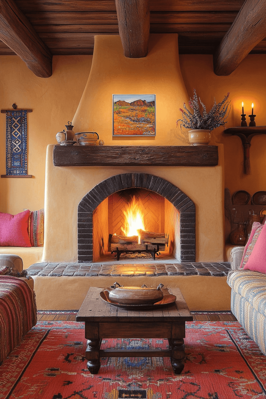 Southwestern adobe fireplaces offer warmth and authenticity with their rounded edges, terracotta tones, and handcrafted details. These fireplaces evoke desert charm and cultural richness, bringing cozy, organic beauty to your home. Pair with rustic wood and woven accents for a welcoming ambiance.