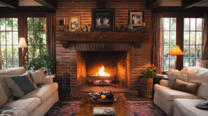 Traditional brick fireplaces bring an unmatched nostalgic warmth to any space. The textured, earthy colors provide a cozy and grounded atmosphere that feels timeless. Whether in a rustic cabin or a more contemporary home, a brick fireplace instantly adds comfort and authenticity to the room. Pair it with wood beams and vintage accessories for a truly inviting environment.