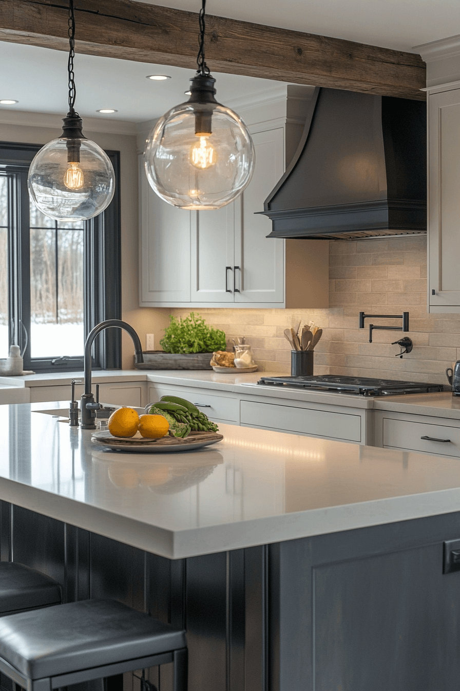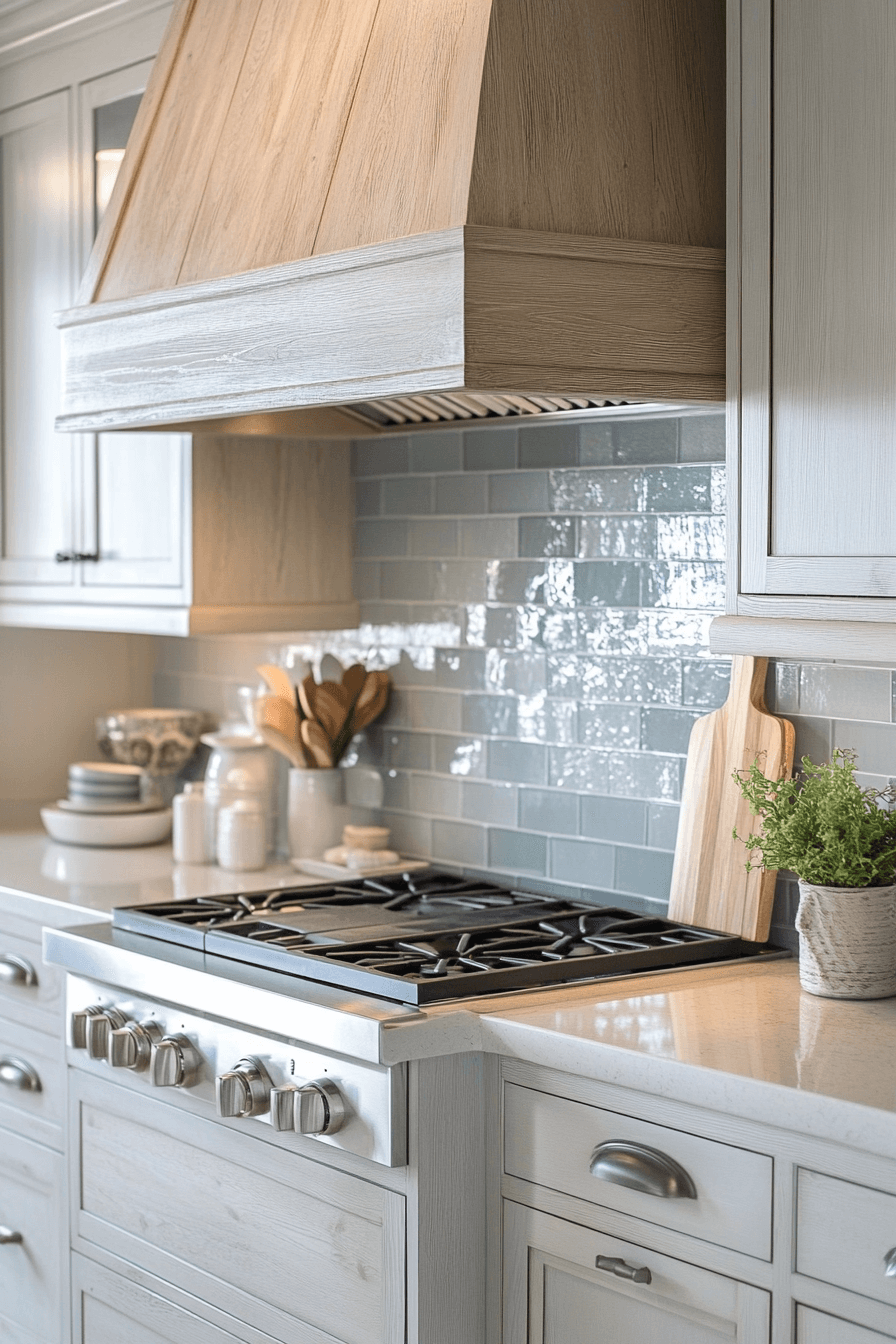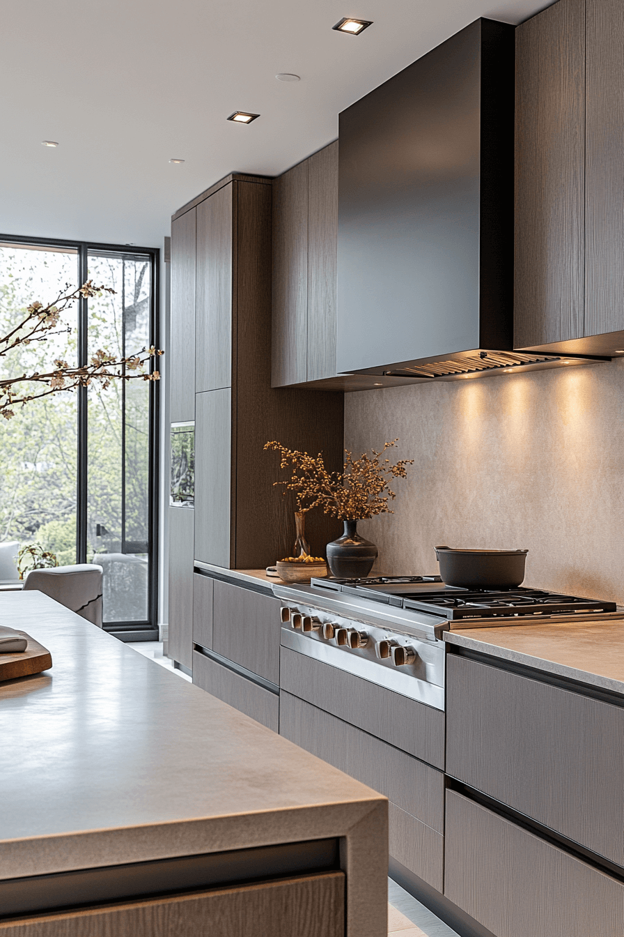 Ash-gray finishes add modern edge to kitchens anchored by neutral kitchen cabinets. The cool undertone contrasts beautifully with warmer materials. This shade brings subtle drama without overpowering the design. It works well in urban and contemporary spaces. The look remains versatile and stylish.