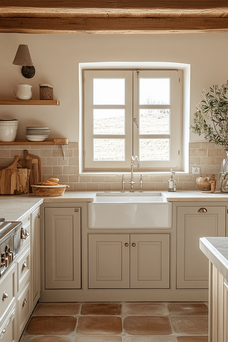 Sand-toned finishes create grounded elegance in kitchens styled with neutral kitchen cabinets. The earthy hue adds warmth while maintaining a light, airy feel. It pairs beautifully with organic materials and soft metals. The look feels relaxed yet curated. This shade suits nature-inspired interiors perfectly.