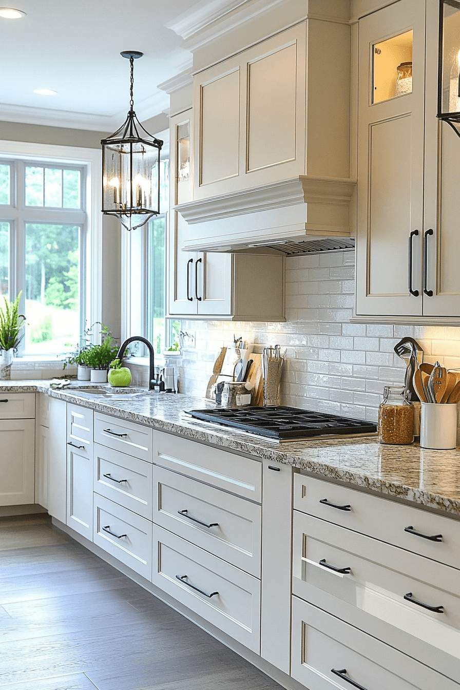 Milk-toned finishes introduce gentle sophistication to kitchens featuring neutral kitchen cabinets. The creamy off-white shade brightens the space without harsh contrast. This tone complements farmhouse, transitional, and modern aesthetics equally well. The kitchen feels inviting and serene throughout the day. The look remains timeless and adaptable.
