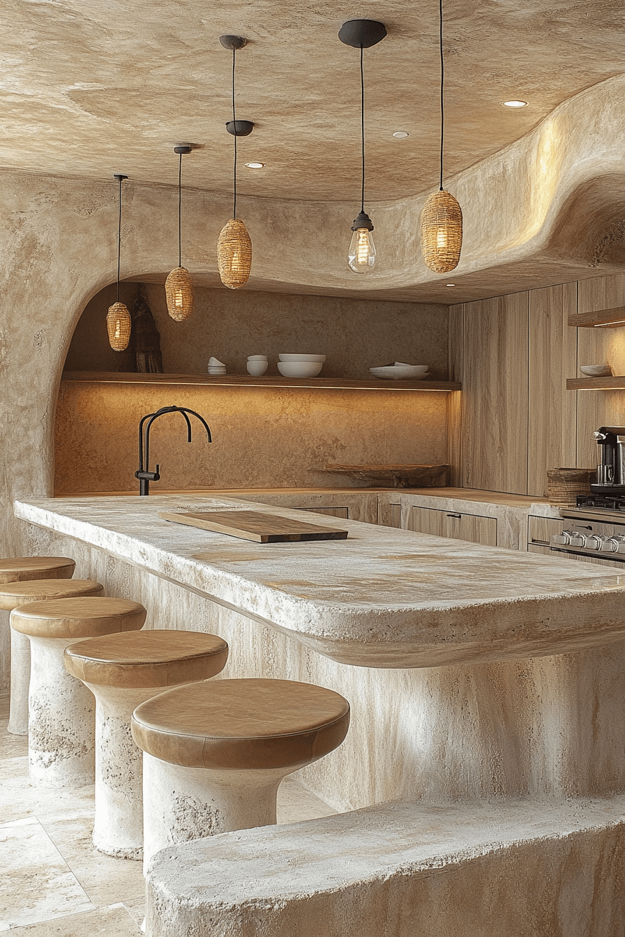 Stone-inspired finishes ground kitchens that rely on neutral kitchen cabinets for balance and sophistication. Subtle gray undertones add modern depth while maintaining warmth. This shade works well with stainless steel, textured tile, and sculptural lighting. The look feels calming without being dull. It supports both bold and minimal design choices.