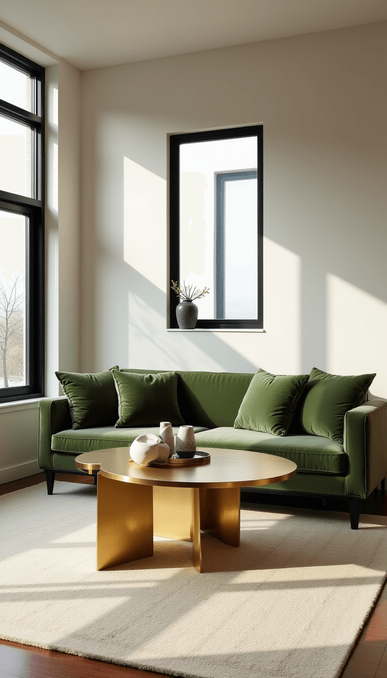 - Paint or Hero Furniture Piece: Sage green sofa or accent wall