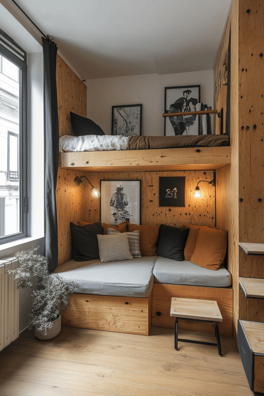 This bedroom embodies the restorative qualities of a scandinavian japanese interior by prioritizing simplicity and comfort. Light woods and neutral textiles create a soothing environment ideal for rest. Integrated storage keeps the room open and visually calm. Soft lighting enhances the tranquil atmosphere in the evenings. Every element supports balance and renewal.