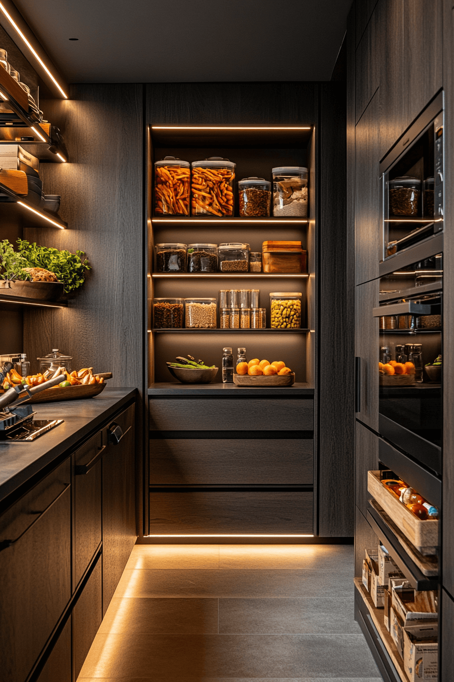 This pantry elevates everyday organization through the thoughtful restraint of a scandinavian japanese interior. Wooden shelving and soft lighting enhance both function and beauty. Clean layouts promote clarity and ease of use. Neutral tones maintain visual calm. Storage becomes part of the design.